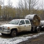 Plan B, if you have the opportunity, can be very economical as well. With plan B I did not get enough notice to set up the bale grazing in advance for one reason or another. There is already snow on the ground and the twines are probably already frozen to the bale. In this method of bale grazing I am buying hay off of a nearby neighbour. I have negotiated the delivery into the purchase price so the hay supplier is also delivering the hay to me. Because of my summer grazing management, I already have a number of grazing paddocks set up in my fields. I now get my hay supplier to deliver one load to each paddock. In this scenario I will have him place the bales on end so that I can remove the twine easier. Once I remove all the twine, I simply graze one paddock at a time. I usually have the supplier deliver once a month at his convenience. As long as I don’t run out, he can deliver whenever he gets a free day. If you noticed, I never touched a bale with a piece of equipment in this scenario. Yet, I paid the same delivery charge that I would have by hiring a semi to deliver the hay. I have had my yardage below 5 cents/head/day with this method.